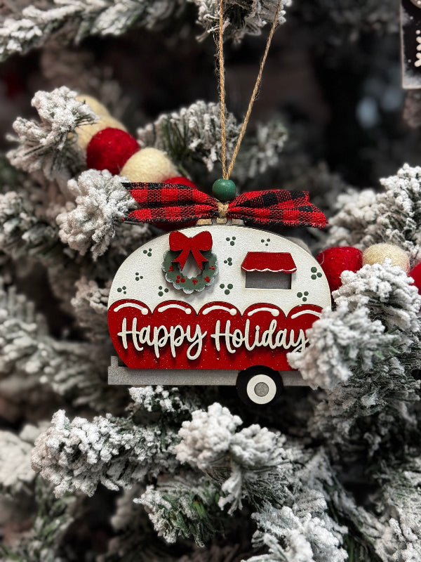 Each ornament comes with paint, ribbon, beads, brushes and glue.
