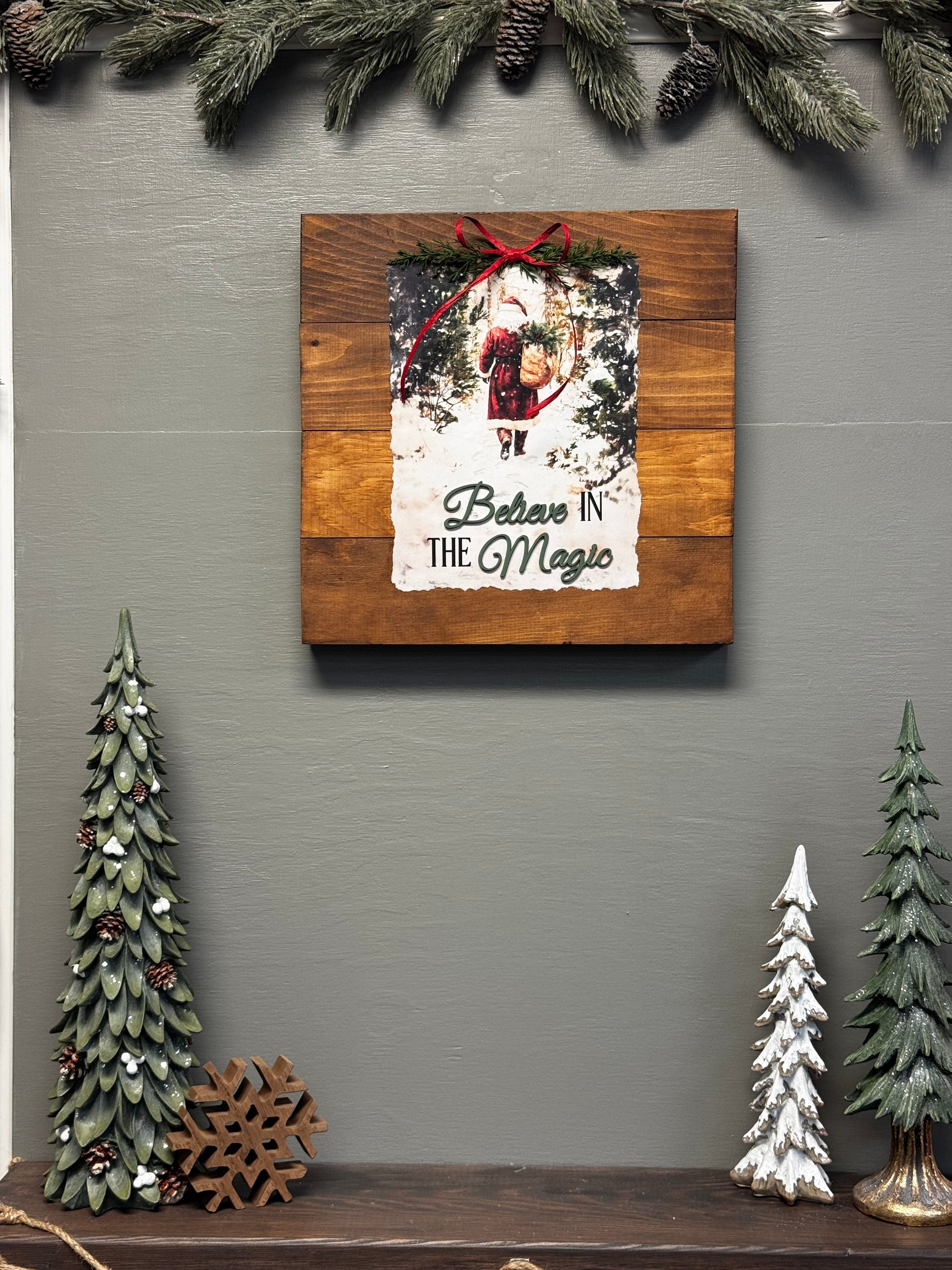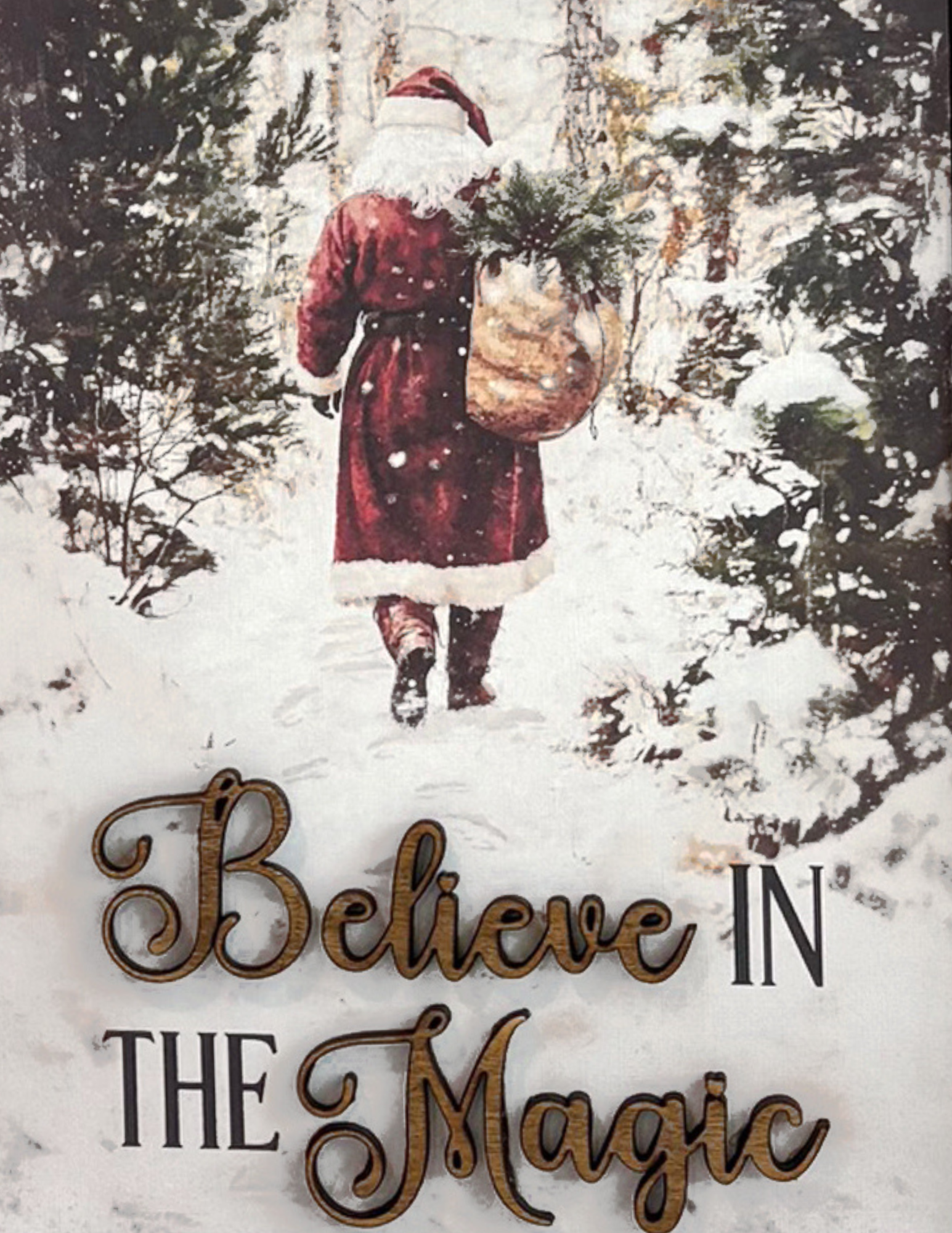 Choose from our holiday art prints and apply it using our decoupage technique for a soft, vintage finish. Each design includes laser-cut words for a raised 3D effect, giving your project extra depth and dimension.